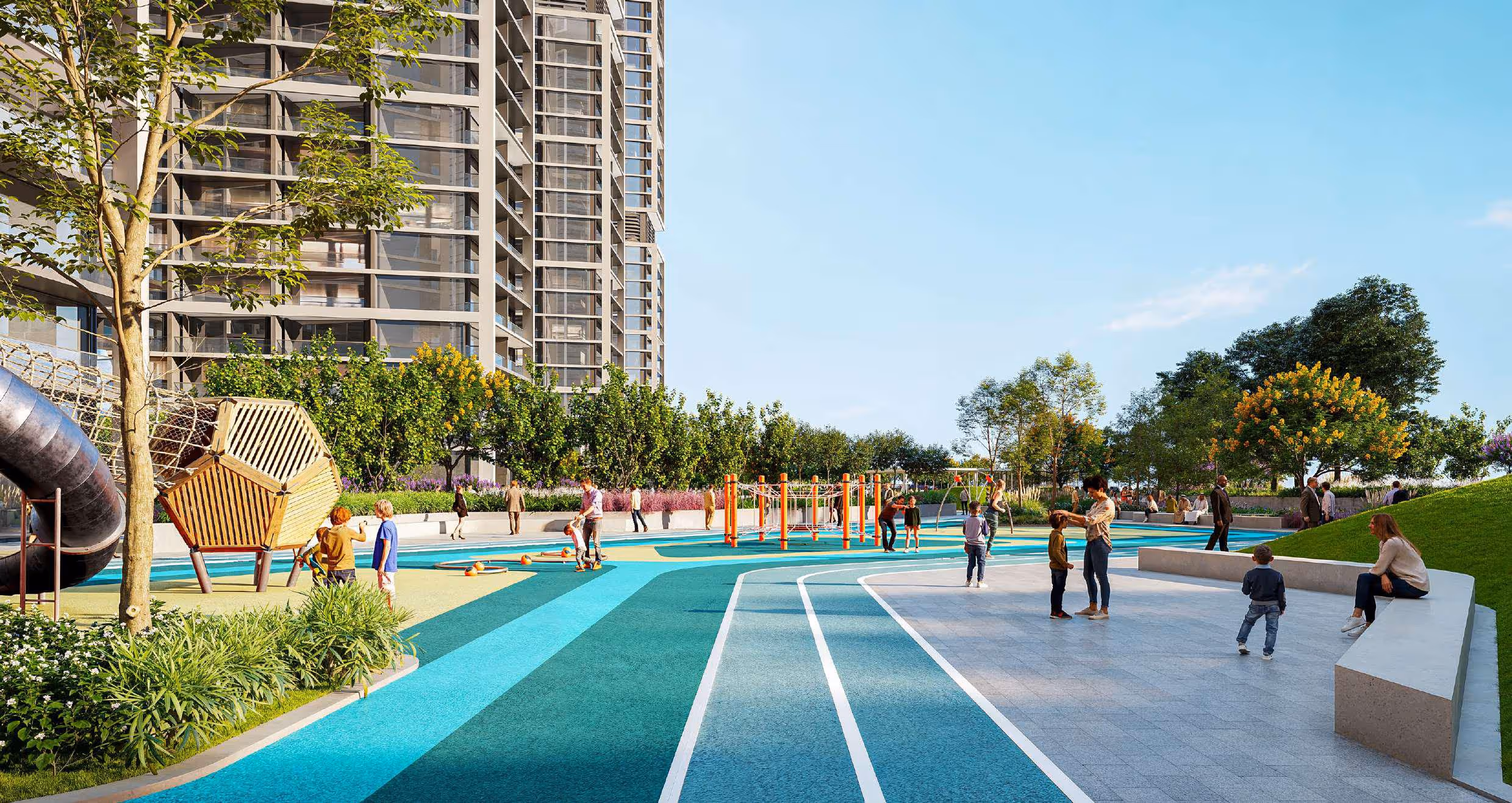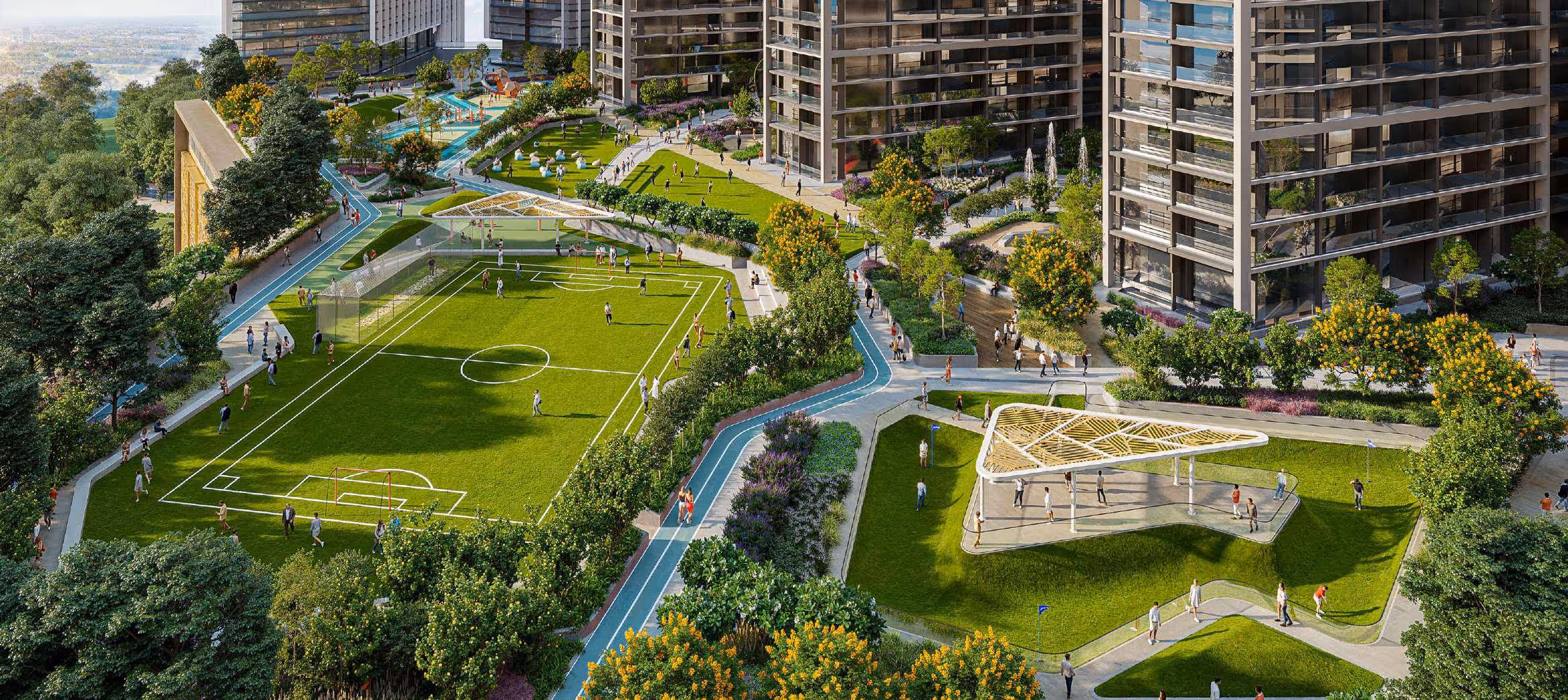 مركز أعمال ومناطق استرخاء ذات مناظر طبيعية ومرافق رياضية.