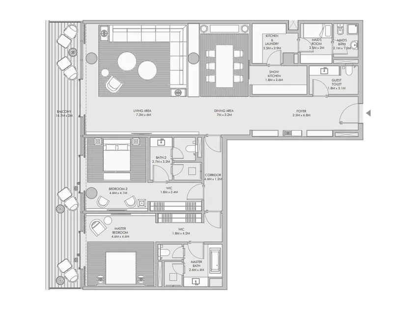 Armani Beach Residences on Palm Jumeirah is an ultra-luxury project created through a collaboration between renowned developer Arada and the iconic Armani brand. Designed by Pritzker Prize-winning architect Tadao Ando, the development draws inspiration from oceanfront landscapes and the minimalist purity of Japanese modernism. The collection includes 2- to 4-bedroom apartments, Presidential Suites, and 5-bedroom penthouses, with select residences featuring private pools.